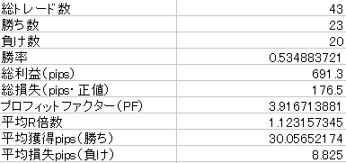 これらの条件の元でエントリーを行った結果このような結果になりました。