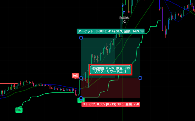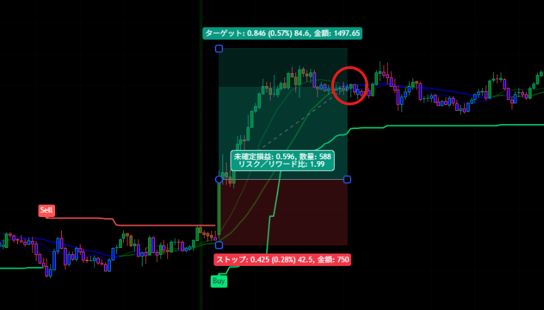 損切りラインを設定したらその数値を基準に利確ラインをリスクリワード比が2になるように設定します。