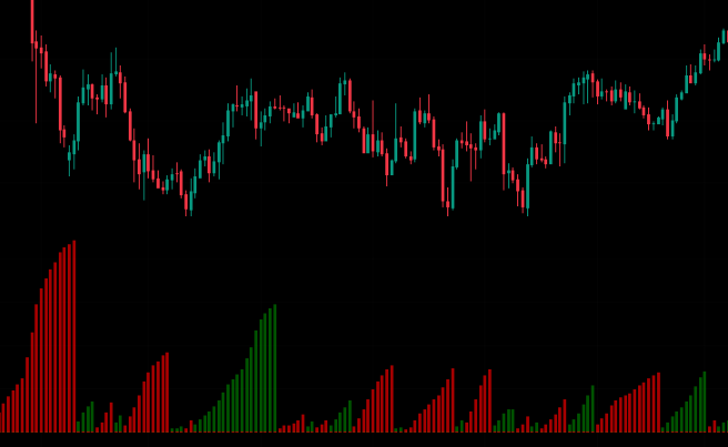| 🟩 緑バー(Up Wave) | 上昇方向の波で発生した累積出来高。 値が高いほど上昇の勢いが強い。 |