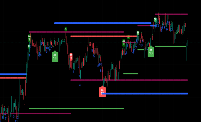 - 安値圏:緑ライン + 数字9〜13 → 買い