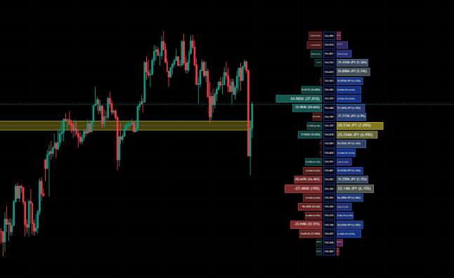 | 反応ゾーン強調 | 買い/売りが極端に偏った価格帯を色で強調 |